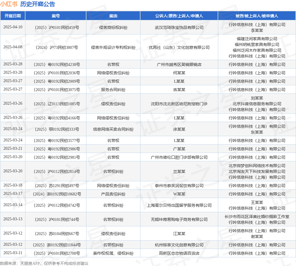 本站消息,根据天眼查APP显示,近日公布了一则行吟信息科技(上海)有限公司作为被告/被上诉人的开庭公告,详细内容如下: